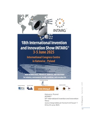 IFIA Magazine September 2025 Katowice, Poland INTARG® 18 International Invention and Innovation th Show www.intarg.haller.pl/home.html?jezyk=1 03 to 05 June 2025 121