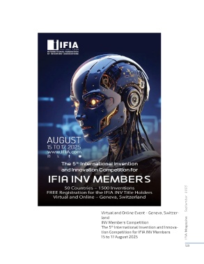 IFIA Magazine September 2025 Virtual and Online Event - Geneva, Switzer- land INV Members Competition th The 5 International Invention and Innova- tion Competition for IFIA INV Members 15 to 17 August 2025 123