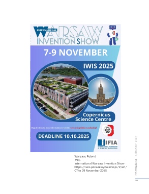 IFIA Magazine September 2025 Warsaw, Poland IWIS International Warsaw Invention Show https://iwis.polskiewynalazki.pl/#/en/ 07 to 09 November 2025 137