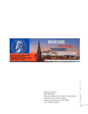 IFIA Magazine September 2025 Moscow, Russia ARCHIMEDES Moscow International Salon of Inventions and Innovation Technologies www.archimedes.ru/arch-2024 17 to 19 March 2026 141
