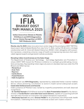 IFIA Magazine September 2025 Also featured was IOTA Diagnostics, represented by celebrated Indian inventor Vaibhav