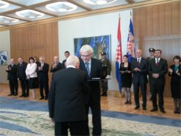 Ivo Josipoviĉ the President of Croatia awarded András Vedres the IFIA President an Order of Croatian Morning Star with Nicola Tesla's portrait on the occasion of the Croatian Republic Day for his continuous support of invention.